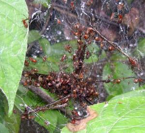 Colonie di ragni che vivono insieme, mangiano insieme e combattono uniti per la sopravvivenza.