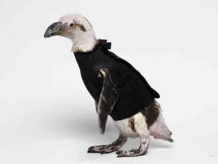 Schaller provò prima a riscaldare Pierre con il calore di una lampada, poi gli venne un’idea migliore. Se le mute tenevano al caldo i sub nelle fredde acque del Pacifico, perché non avrebbero potuto riscaldare un ben più piccolo pinguino spiumato?Gli scienziati e i biologi dell’Academy of Sciences di San Francisco hanno, a quel punto, pensato bene di realizzargli una sorta di muta su misura: un cappotto per un pinguino! Ora possiamo dire di averle proprio viste tutte: Un pinguino freddoloso con il cappotto!