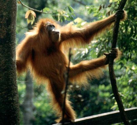 Orangotango di Sumatra: vive nel sud-est asiatico. Dopo essere stato presente in larga parte del Continente, oggi è limitato all’isola di Sumatra, dove si trova di fronte estreme pressioni da perdita di habitat. Negli ultimi 20 anni l’80% del suo habitat è stato eliminato a causa della ricerca dell’oro, dal disboscamento e dall’agricoltura (soprattutto le piantagioni di palma da olio). Gli incendi boschivi del 1997 e il 1998, hanno spazzato via fino ad un terzo della popolazione. Sebbene esistano programmi di conservazione, con le percentuali attuali di declino, si pensa che le popolazioni selvatiche dell’orangotango di Sumatra potrebbero estinguersi allo stato selvatico nel 2010. Sì, proprio il prossimo anno.