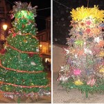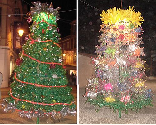 Bottiglie riciclate: A Caldas da Rainha, in Portogallo, questi alberi di Natale (foto sopra) sono stati creati con bottiglie di vetro scartate. Le luci sono infilate al posto dei tappi, e chiunque voglia vederle può visitare liberamente la città, visto che sono esposti in piazza.