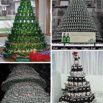 Bottiglie di vetro: anche questo è un classico che va sempre più di moda, l’albero di Natale fatto con bottiglie di vetro. Accumulatele per tutto l’anno, e poi impilatele uno sull’altra, magari incollandole tra di loro per evitare disastri. Vanno bene bottiglie di vino, birra e liquori. Anzi, più sono diverse e più l’albero risulterà colorato.