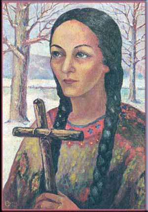 “Colei che ha la sua strada nelle sue mani”, questo vuol dire il suo nome in lingua mohawk, è celebrata il 14 luglio come protettrice dell’ambiente, come San Francesco d’Assisi. La storia della beata Caterina è molto triste: rimane orfana di entrambi i genitori morti in seguito ad un’epidemia di vaiolo, e viene allevata dagli zii che non avevano figli. Impara ben presto le arti della caccia e della concia delle pelli, ma comincia anche a distiguersi dalle sue coetanee per la sua fede cattolica, ricordo dalla madre e suo unico insegnamento, trascorreva molto tempo nel silenzio dei boschi a pregare e cantare inni alla natura e a Doi.