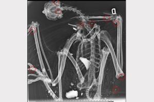 Così inizia la lettera diffusa dal Parco delle Alpi Apuane assieme alla radiografia che mostra le ferite dell’arma da fuoco sul corpo del rapace, evidenziate entro piccoli cerchi rossi. L’aquila reale è stata trovata da Adolfo Coppi di Fiumalbo mentre era impegnato in un’arrampicata lungo la via “Bimbi da Prato”, a circa 1.400 metri di quota. Due giorni dopo è stato possibile recuperare il corpo. Si trattava di un adulto di aquila reale, quasi certamente il maschio di una coppia che aveva nidificato nell’area più meridionale delle Alpi Apuane, che volava all’interno di un’area protetta e vietata alla caccia. L’aquila reale è tuttavia una specie protetta anche fuori dal Parco. I Guardiaparco avevano notato nella primavera un’interruzione della nidificazione delle aquile che controllano l’area delle Panie, ma poi un esemplare aveva preso il posto dell’esemplare forse ucciso, rimendiando così “ai danni degli esseri umani”.