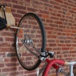 Se invece volete spendere meno c’è il gancio Leonardo, una sorta di rastrelliera da muro che permette di agganciare la ruota anziché il bastone della bici, e che per occupare meno spazio anziché tenerla sul pavimento la tiene perpendicolare al muro. Più o meno come fa il prodotto della Clanckworks che però in più fornisce una mensola per gli accessori come il casco o la catena.
