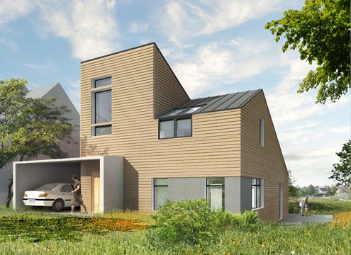 La prima casa basata su questo modello è stata costruita a Verrières-le-Buisson in una zona di alto valore ambientale. Chi vi abita darà conto dell’esperienza, più o meno positiva, del risparmio e del rendimento energetico, nell’ottica di una misurazione del soddisfacimento degli standard che sia il più possibile trasparente.