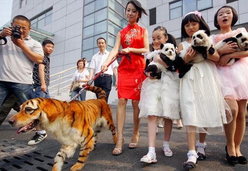 I cani in Cina non si portano quasi più in tavola ma di certo il rispetto per gli animali dagli occidentali considerati domestici non ha certamente compiuto grandi passi in avanti. Lo dimostra l’ennesima tendenza shock che, dopo la a dir poco sconcertante moda dei portachiavi con gli animali murati vivi, testimonia ancora una volta fino a che punto altri esseri viventi, e non certo per sopravvivenza, vengano considerati dall’uomo alla stregua di giocattoli inanimati, da modificare, tagliuzzare e plasmare ad uso e consumo della bieca industria dell’intrattenimento umano. Parliamo di cani di diverse razze che vengono dipinti da altri animali: i domestici diventano selvatici. Un cane si trasforma in un panda oppure in in una tigre e così via discorrendo.