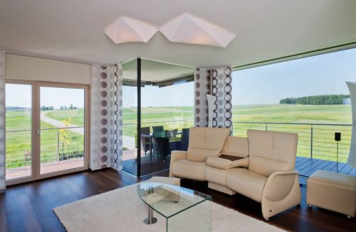 Ma veniamo agli impianti energetici dell’abitazione. La casa già realizzata attenendosi a questo nuovo modello è dotata di un impianto fotovoltaico di 25 m2 integrato, che garantisce un massimo di 4 kWm. Un impianto solare termico sul tetto in ghiaia assicura acqua calda. Per quanto concerne la ventilazione, invece, è assicurata all’edificio da uno speciale sistema di ventilazione controllata che umidifica l’aria e recupera il calore. Per concludere c’è anche un impianto di teleriscaldamento.