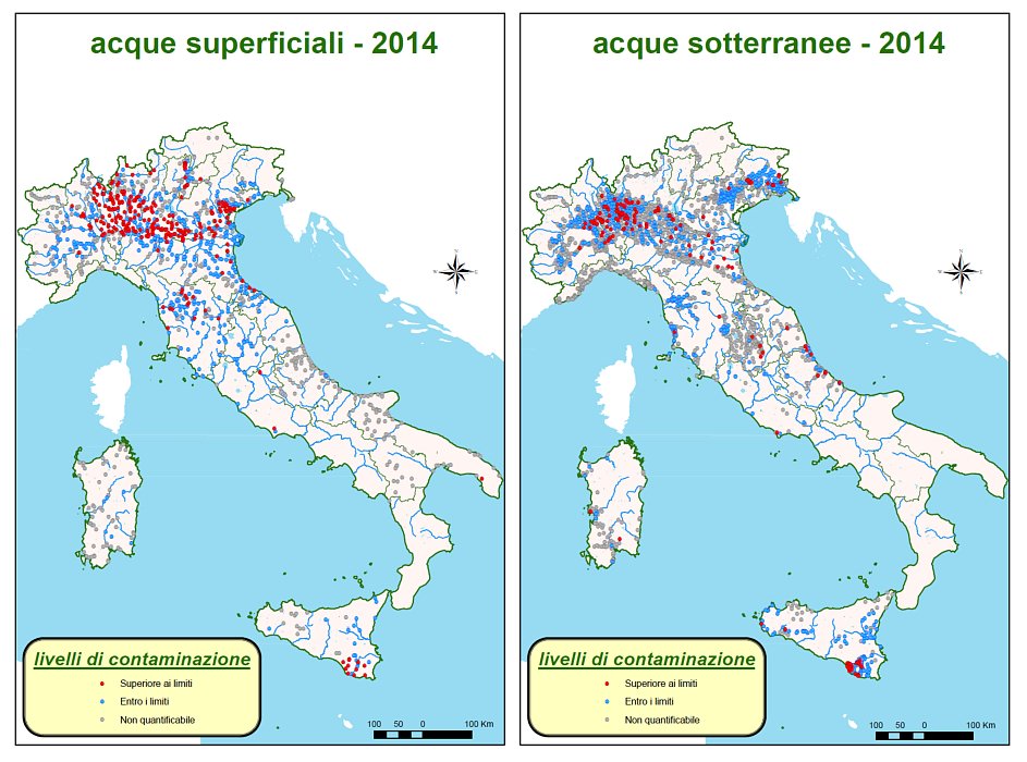 ISPRA, pesticidi nel 63,9% delle acque superficiali