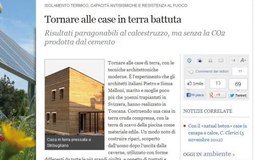 casa km zero toscanaI nostri antenati utilizzavano gli elementi naturali per costruire case. In particolare terreno, fango ed altri materiali che potevano trovare sul posto. Erano stupidi? Probabilmente siamo più stupidi noi che costruiamo case col cemento che arriva dall’altra parte del mondo e che inquina in maniera esagerata. Ma siccome non si può fare a meno di costruire case, allora perché non tornare alle tecniche di una volta? Ci stanno pensando gli architetti Pietro e Simsa Melloni che hanno realizzato la prima casa a km zero in provincia di Grosseto.