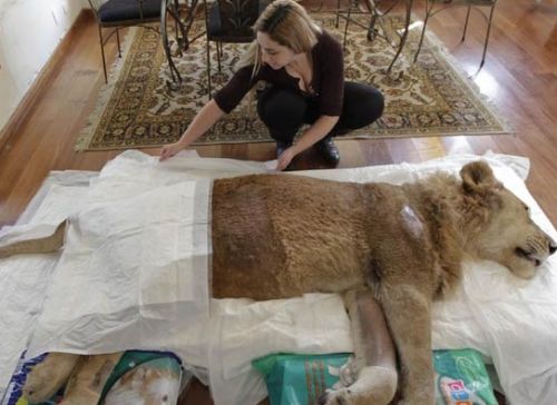 Ariel, il leone paralizzato da una malattia degenerativa: l’uomo