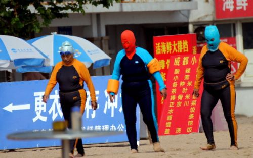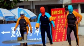 Cina, l’inquinamento costringe i bagnanti ad indossare la maschera (gallery)