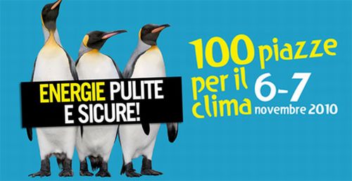 Legambiente dà appuntamento ai cittadini il 6 e il 7 novembre per l’iniziativa Cento piazze per il clima, la Festa delle energie pulite, delle rinnovabili contro il nucleare ed il carbone. In occasione del ventitreesimo anniversario della vittoria referendaria contro l’atomo, numerose associazioni ambientaliste ed organizzazioni, tra cui la Coalizione in marcia per il clima, si mobiliteranno per promuovere la raccolta firme a sostegno di un progetto di legge d’iniziativa popolare: “Sviluppo dell’efficienza energetica e delle fonti rinnovabili per la salvaguardia del clima”.
