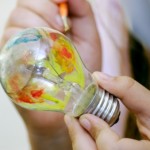 Più semplice da maneggiare è il cartone con cui si possono realizzare delle palline intrecciando delle strisce piccole ricavate da uno scatolone (foto 5) oppure dei dischetti su cui disegnare candeline accese, fiocchi di neve o piccoli doni di Natale (foto 6). Con l’alluminio potete invece rivestire delle piccole scatoline, come quelle dei medicinali ad esempio, e formare delle caramelline legando con dei nastrini le due estremità della scatola (foto 7) oppure dei piccoli doni da appendere all’albero (foto 8). Con le lampadine usate potete dare sfogo alla vostra creatività colorandole con vernici ecologiche e lavabili (foto 9) oppure rivestirle con della carta da regalo o, come nell’esempio, con la carta dei cioccolatini Baci (foto 10). Ora sì che il vostro albero di Natale è unico e green al 100%!
