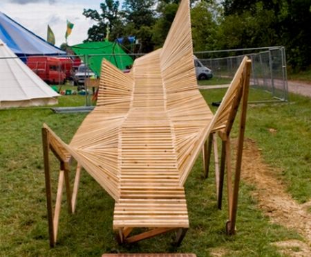 La moda si sta diffondendo in fretta. La casa che vedete nella foto in home page è stata progettata con la parete esterna fatta di pallet industriali. L’architetto ha voluto creare una “pedana estetica” che sarebbe ecologica quanto bella. Invece la moderna scultura che vedete nella foto qui sopra è stata progettata in occasione del festival WOMAD nel Regno Unito. Costruita dalla Roots Architecture, tra gli altri componimenti, è fatta di pallets a zero chilometri con un sistema di travature triangolari. Alla fine del festival, sarà smontata in tantissimi pezzi di legno ordinario, pronti per la prossima trasformazione.
