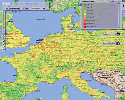 La nuova serie di mappe mostra dove alcuni inquinanti, dagli ossidi di azoto al particolato, vengono rilasciati. Esso integra i dati esistenti sulle emissioni dei singoli impianti industriali con quelli del registro europeo delle emissioni e dei trasferimenti di (E-PRTR). Il registro, a livello europeo, mira ad aiutare i cittadini ad impegnarsi attivamente nelle decisioni che riguardano l’ambiente.