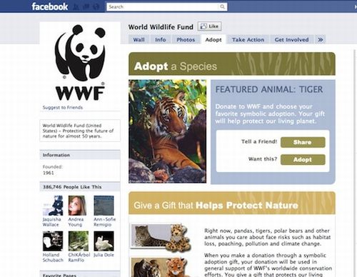 5. Adotta una Tigre. Il World Wildlife Fund (WWF) permette di adottare un animale selvatico anche se non avete a disposizione immense foreste per farlo scorazzare liberamente. E’ possibile accedere alla pagina dell’organizzazione per effettuare una donazione simbolica attraverso il profilo Facebook, scegliendo il vostro animale preferito tra oltre 100 specie in via d’estinzione.