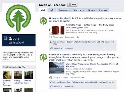 6. Green su Facebook: una pagina per Eco Risorse. Si chiama solo “Green” ed è una pagina di Facebook che serve per mettere in evidenza gli sforzi verdi dell’omonima società che si è impegnata in campagne per dimezzare l’utilizzo dei server, concentrandosi sul “computing a basso consumo energetico”, sul riciclaggio e compostaggio nelle sue proprietà, e tante altre iniziative.