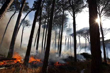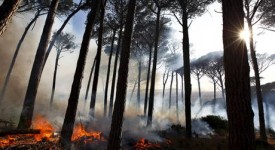 Un bosco in fiamme a Cape Town, in una foto d’archivio.