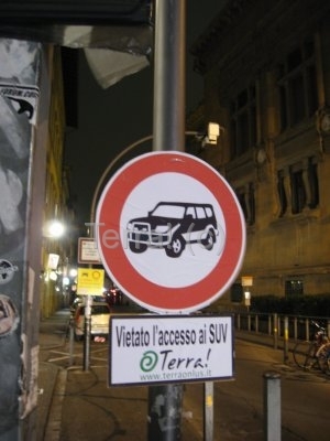 Le automobili fanno male: inquinano l’ambiente con le loro emissioni nocive e danneggiano la salute umana. Inoltre, come ci spiega Paola Pagliaro, uno studio del Centro internazionale per la ricerca sul clima e l’ambiente (Cicero) ha evidenziato che le auto hanno una forte incidenza sul riscaldamento globale. Per tutti questi motivi, alcuni attivisti dell’associazione ambientalista Terra! hanno organizzato a Firenze un’azione di protesta contro l’inquinamento da CO2 da auto ed in particolare da SUV. La scorsa notte sono stati piazzati 40 cartelli stradali di divieto di accesso ai SUV nei 20 varchi di accesso alla ZTL della città di Firenze. “Vietato l’ingresso al centro storico per i veicoli con emissioni di CO2 superiori a 120 g/km”, “Vietato l’accesso ai SUV”, “Vietato respirare!” cosi recitano alcuni dei cartelli posizionati dagli attivisti di Terra!.