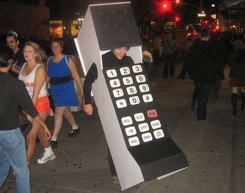 Telefono cellulare. Se siete degli amanti dei telefoni, è possibile anche indossarli. Magari quello in foto è fatto da un esperto, ma con un grande cartone ed un po’ di destrezza nel disegno e ritaglio potreste ottenere un effetto simile. Questo può servirvi da idea ispiratrice.