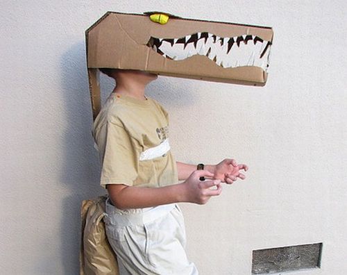 Coccodrillo. Uno dei costumi più facili da costruire è quello del coccodrillo. Basta avere a disposizione del cartone, della carta da macellaio, nastro adesivo, cesoie o forbici grandi per creare i denti, cucitrice, un pennarello nero, colla e carta velina. Ovviamente bisogna trovare qualcosa dal vostro guardaroba che sia di colore bruno o verde.