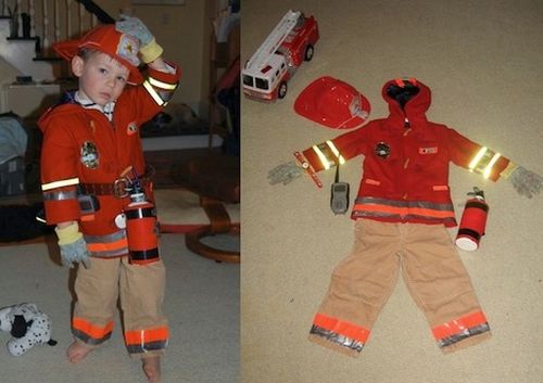 Anche il vigile del fuoco potrebbe essere un travestimento carino, specie per i più grandi. La maggior parte del costume è fatta con aggiunta di nastro adesivo e strisce riflettenti su una giacca e un paio di pantaloni vecchi che non importa se vengono rovinati. Il cappello può essere riciclato da uno vecchio ritagliato e magari ridipinto, mentre i guanti da giardinaggio e un vecchio tubo da giardino rotto vanno a completare la divisa. L’estintore si può ricavare da una bottiglia da due litri o una borraccia dipinta di rosso ed un portachiavi come manometro. Per aggiungere un tocco in più una radio portatile, un paio di occhiali da sci, e una vecchia cinghia, indossata sopra il cappotto, concludono l’opera.