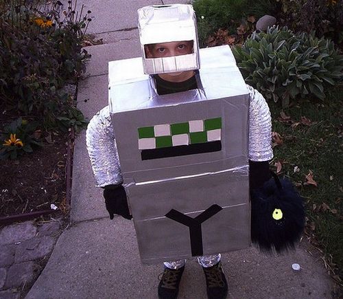 Un esempio? Il robot è sempre uno dei costumi più popolari tra i bambini. Tutto ciò che serve è una scatola di cartone o scatole grandi abbastanza da contenere tutto il corpo e alcuni oggetti domestici, come un tubo di plastica, fogli, colla, vari articoli elettrici, nastro isolante e vernice argentata.