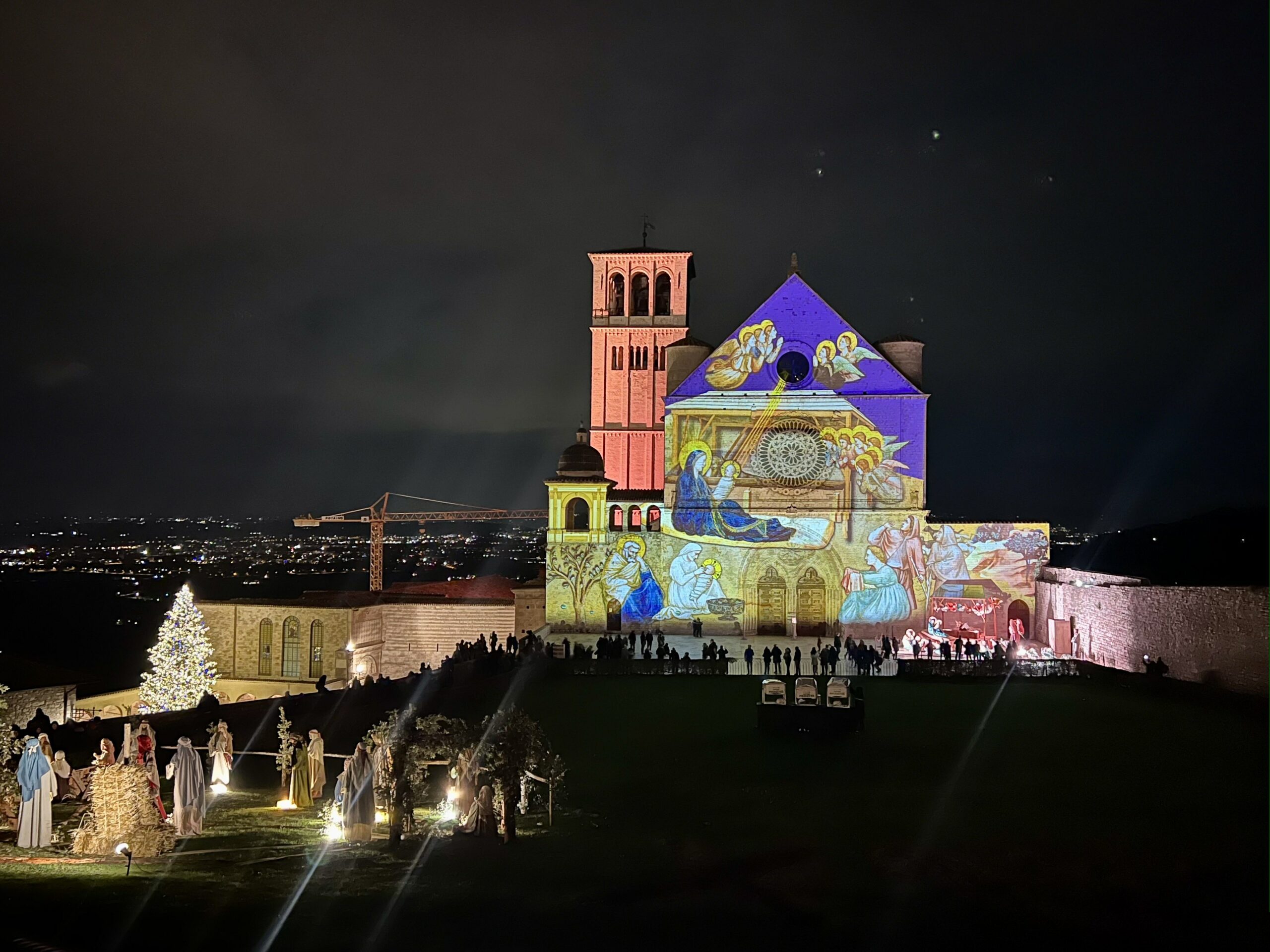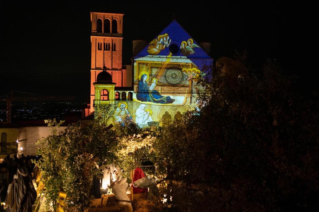 Quest’anno, il viaggio visibile dalla valle coinvolge anche i santuari francescani della Basilica Porziuncola di Santa Maria degli Angeli e del Sacro Tugurio a Rivotorto. E, per il terzo anno consecutivo, consente di proiettare affreschi di Giotto legati alla Natività sulle facciate delle chiese e dei monumenti, in un percorso di luci e colori che coinvolge la Chiesa Superiore della Basilica di San Francesco, l’Abbazia di San Pietro, la Piazza del Comune, la Cattedrale di San Rufino, la Basilica di Santa Chiara, la Basilica di Santa Maria degli Angeli, il Santuario di Rivotorto e Rocca Maggiore.
