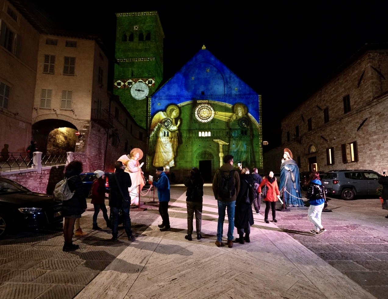 Nel 2021, l’iniziativa aveva riguardato anche la Basilica di Santa Chiara, l’Abbazia di San Pietro e il Palazzo comunale. Con un itinerario allargato, dall’Annunciazione di Maria sulla facciata della Cattedrale di San Rufino all’adattamento grafico della Visitazione su quella della Basilica di Santa Chiara e l’Adorazione dei Magi sulla facciata dell’Abbazia di San Pietro.