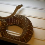 Infine abbiamo la foto di un Carpet Python, più precisamente di un esemplare con colorazione gialla maculata di specie Morelia spilota. Diffuso in Australia e Nuova Guinea, è un altro serpente dalle dimensioni ragguardevoli che non di rado arriva a toccare i 3 metri di lunghezza.