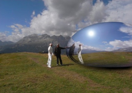 L’originale rifugio ha un diametro approssimativo di 8 metri ed è ricoperta in superficie da una struttura doppia di vetro, rivestito a sua volta da uno speciale rivestimento riflettente. Pertanto, la superficie esterna della capsula riflette, come uno specchio, l’ambiente circostante, dematerializzandosi dallo scenario montano e integrandosi perfettamente con gli scenari naturali.