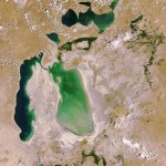 Il lago d’Aral, erroneamente chiamato Mare d’Aral (è salato), è tristemente noto come oggetto di uno dei disastri ambientali più gravi della storia dell’umanità, se non il più grave in assoluto. Così lo descrive Al Gore nel suo libro Earth in balance. Così lo vediamo dalle immagini riprese dal satellite (foto sopra).