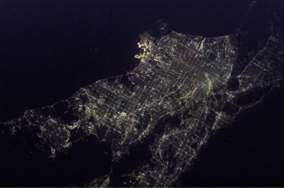 Una vista mozzafiato della Los Angeles by night, in questo scatto che risale al 2003. Hollywood è in fondo, mentre le luci scintillanti che si intravedono a nord, sono il porto di Long Beach Naval Shipyards ed il Los Angeles International Airport. Le brillanti luci vicino al centro sono di certo quelle di Disneyland!
