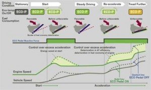 L’ecopedale della Nissan è stato introdotto lo scorso mese dalla Nissan per ottimizzare, in maniera attiva, il comportamento alla guida. Quando il sistema rileva che il conducente sta premendo troppo sull’acceleratore, il pedale si muove indietro avvertendo in tal modo il guidatore che sta dando troppo gas.