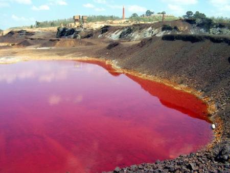 Nonostante sia stata chiusa nel lontano 1966, 43 anni fa, la miniera di São Domingos, in Portogallo, situata a cinque chilometri dal confine spagnolo, continua a contaminare le acque del fiume che sfocia nella diga di Chanza, il più grande serbatoio di acqua potabile nella provincia di Huelva. La foto sopra fa alquanto rabbrividire.