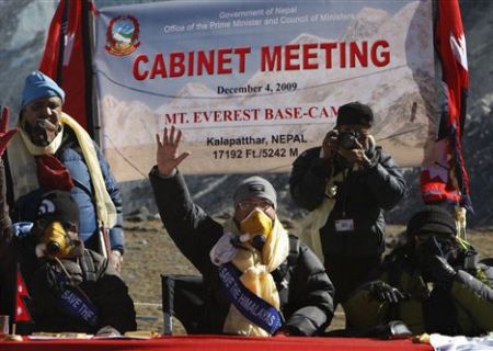 Come ha fatto il Governo delle Maldive qualche settimana fa, che si è riunito sott’acqua per decidere cosa fare in merito al cambiamento climatico, qualcosa di simile è successo in Nepal ieri mattina, quando 24 ministri si sono riuniti intorno ad un tavolo sulla montagna più alta del mondo per discutere di cambiamento climatico.