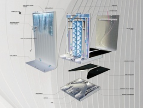 La torre fornirà energia elettrica alla città e interamente al villaggio olimpionico, ma è stata progettata anche per essere uno spazio per la città: dalla piazza antistante posta a 60 metri sul livello del mare si può raggiungere un anfiteatro, dei negozi e delle caffetterie, un grande centro congressi, e persino una piattaforma retrattile a 90 metri di altezza per praticare il bungee jumping. In cima alla torre si troverà la cascata che sarà il nuovo simbolo della città, visibile per coloro che arriveranno a Rio de Janeiro con la nave o con l’aereo.