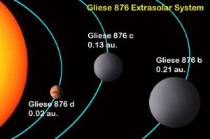 in orbita attorno ad una stella, con una massa compresa tra 1,9- 5 e 10 masse terrestri. Studi successivi hanno invece mostrato che il corpo celeste non avrebbe potuto ospitare la vita perché i suoi iniziali modelli climatici sono stati soggetto ad un imponente effetto serra che lo ha reso simile al pianeta Venere, che presenta un’atmosfera costituita per il 96,5% di biossido di carbonio e una termperatura così elevata che la superficie è totalmente desertica e priva di acqua. Il primo corpo celeste ad essere scoperto è Gliese 581 B. I ricercatori francesi e svizzeri lo hanno individuato il 22 agosto 2005, ma solo nel novembre dello stesso anno ne hanno dato notizia. La sua massa è circa 16 volte la massa terrestre, per cui è molto simile a Nettuno, ha una temperatura di circa 420 kelvin, circa 120 C. Gliese 581 E viene scoperto il 21 aprile 2009 dal gruppo guidato da Michel Mayor, dell’osservatorio di Ginevra. Risulta essere il più piccolo pianeta extrasolare che ruota attorno a una stella, scoperto finora. La vicinanza con la stella madre rende la sua temperatura superiore a 500 K, per cui l’ipotesi di una sua abitabilità è scartata sin dall’inizio. Il terzo pianeta ad essere scoperto, e il quarto per vicinanza con la stella madre, è Gliese 581 D, ai margini esterni della zona abitabile: troppo distante dal suo sole ha una temperatura bassa, scarsa luce e poca protezione dalle radiazioni solari.