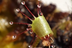Le trappole adesive posseggono foglie o talvolta fusti ricoperti da numerose ghiandole che le prede scambiano per gocce di rugiada rimanendone dapprima immobilizzate e, successivamente, digerite attraverso appositi enzimi. Alla categoria delle trappole a scatto appartiene invece la famosa Venere acchiappamosche Dionaea muscipula, sicuramente la pianta carnivora per eccellenza (foto 3) e Aldrovanda vesiculosa, sua cugina acquatica (foto 4, su gentile concessione di Andrea Amici, socio AIPC). Entrambe possiedono caratteristici recettori sensitivi posti sul lato interno delle due valve a forma di tagliola, capaci di rispondere alle stimolazioni tattili derivanti dagli insetti. In Dionaea muscipula si assiste a una veloce variazione della plasticità cellulare delle pareti, portando cosi le due parti della trappola a serrarsi in maniera repentina.