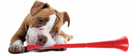 10: Trasformala in un gioco per il cane. Fido potrebbe scambiare la vostra vuvuzela per un osso, specialmente se lo riempite con qualche odore di cibo. Lasciateglielo sgranocchiare in pace, e lui non allenerà più i suoi denti sulle vostre pantofole.