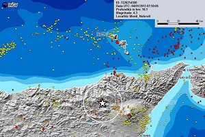 Questa mattina una sequenza di scosse di terremoto hanno interessato la Sicilia e in particolare la zona tra Catania e Messina. La scossa di terremoto di maggior entità si è verificata alle ore 8.50 ed è stata valutata dall’INGV come di magnitudo 4.3, a cui hanno fatto seguito due scosse di magnitudo pari a 2.4 e 2.5 gradi della scala Richter.