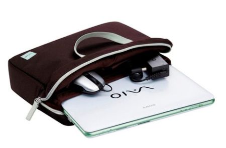 2. La borsa porta-computer è compresa nel costo del pc ed è anche quella ecologica. Sony ha fatto un enorme sforzo per ridurre l’imballaggio di tutti i proditti che vanno dalla fabbrica al consumatore. Nel complesso, ha raggiunto una riduzione del 10% delle emissioni di CO2 rispetto ai modelli precedenti. Per ridurre gli imballaggi, i laptop sono confezionati in scatole da 4, quando vengono inviati ai negozi. Questo aumenta il numero dei pacchi che possono essere trasportati sul camion, riducendo le emissioni di anidride carbonica e gas. Il computer poi viene consegnato al cliente in una piccola borsa nera prodotta per il 100% da bottiglie in PET riciclato, senza scatole di cartone o carta da pacchi intorno ad esso. La borsa è avvolta in plastica, ed il negozio è tenuto a rimuoverla e conservarla prima di consegnarla al cliente.