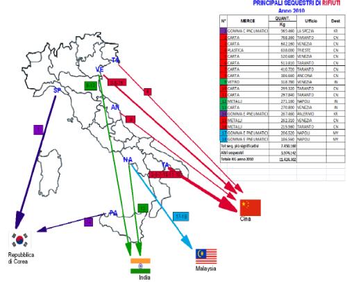 “Rifiuti Spa. Dieci anni d’inchieste sui traffici illegali di rifiuti. I risultati raggiunti e le proposte per un nuovo sistema di tutela penale dell’ambiente” è l’ultimo dossier choc di Legambiente che ha monitorato tutti i fatti, gli illeciti, le promesse dell’Italia dal 23 febbraio 2002 ad oggi, giorno in cui viene emessa “la prima ordinanza di custodia cautelare per traffico illegale di rifiuti nel nostro Paese” dal Comando Tutela Ambiente dell’Arma dei Carabinieri. Oggi esiste una legge specifica per contrastare le “attività organizzate per il traffico illecito di rifiuti” (art. 260 del Dlgs 152/2006) e si sonotano 191 inchieste, 1.199 ordinanze di custodia cautelare.