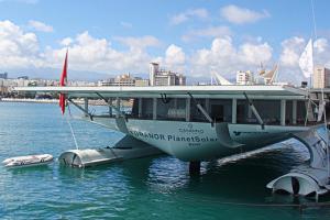 E’ un catamarano Turanor Planet Solar, il primo ad aver compiuto il giro del mondo spinto solamente dall’energia solare. Ha impiegato un po’ più di 80 giorni, come nel celebre romanzo di Jules Verne; eppure entrerà comunque nel Guinnes dei primati. Il catamarano, ideato dall’ingegnere svizzero Raphael Domjan, è arrivato a Montecarlo venerdì pomeriggio dove era partito il 27 settembre 2010, 584 giorni fa.