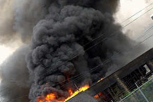 Incendio in una fabbrica di vernici di Brebbia, sostanze pericolose nell’aria determinano la necessità, da parte dei vigili del fuoco, di utilizzare un carro aria con bombole d’ossigeno per evitare di respirare i fumi tossici esalati dalla combustione della fabbrica.