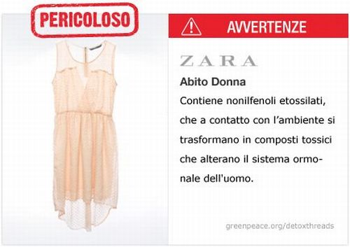 Altro che alta moda. Alto inquinamento! E’ quanto denuncia oggi Greenpeace nel suo rapporto Toxic Threads – The Fashion Big Stich-Up, in cui analizza alcune delle principali case di moda mondiali, e dalla cui analisi in pochi ne escono puliti. Secondo l’associazione ambientalista molte case utilizzano per i propri abiti delle sostanze tossiche che fanno male alla salute umana.