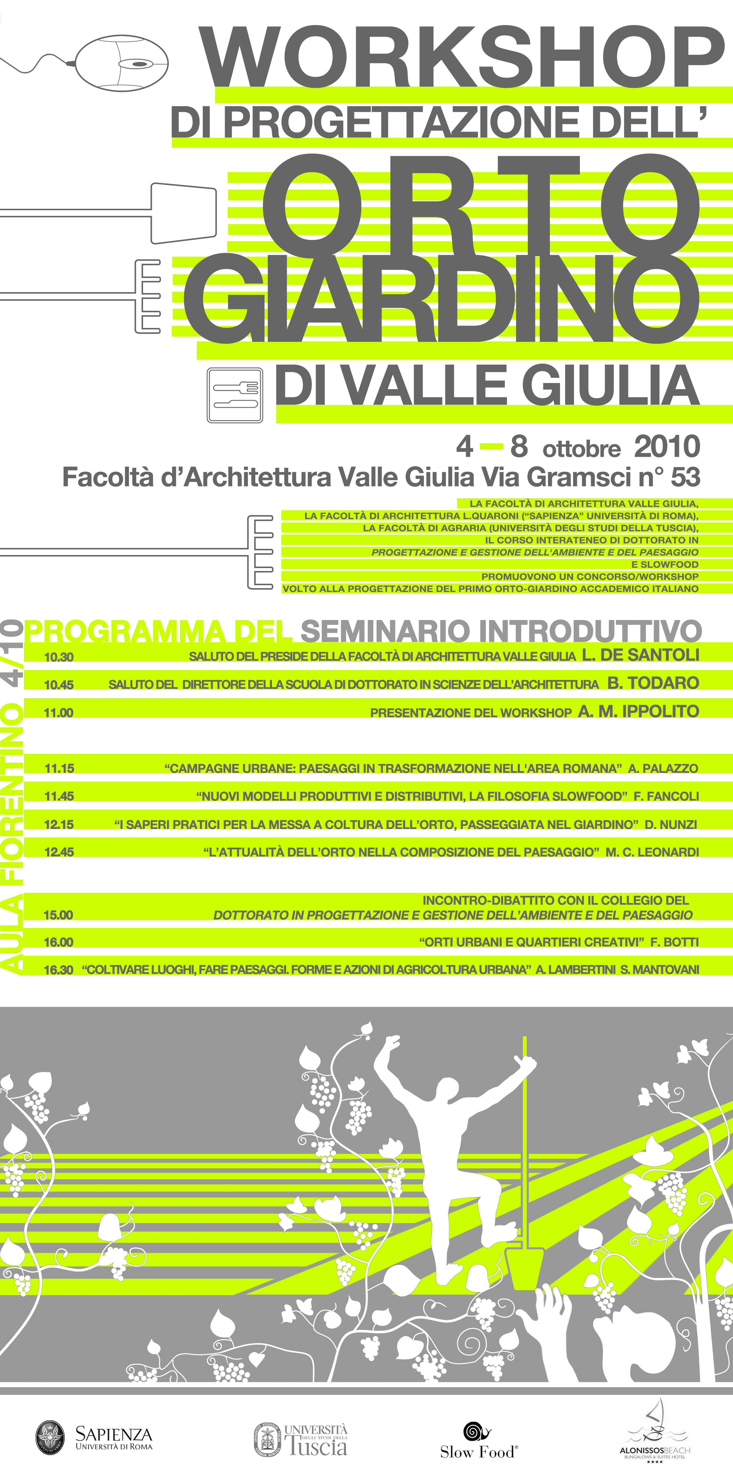 Si è concluso venerdì, nei locali della facoltà romana di Architettura a Valle Giulia, il workshop di progettazione che ha visto impegnati per quattro giorni venticinque studenti, selezionati tra un centinaio di aspiranti, nella progettazione dell’orto-giardino a servizio della nuova mensa di facoltà.