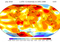 Ennesimo record in un 2016 che sembra ormai solidamente impostato per diventare uno degli anni più caldi della storia. Anche a luglio il progetto GISS della NASA ha rilevato una elevata anomalia termica su scala globale ritoccando al rialzo i valori limite già toccati nel 2015. Riscaldamento globale ed azioni transitorie sul clima del pianeta sommano ormai da molti mesi i relativi effetti generando una situazione tra le più anomale e caratteristiche da quando esistono dati sistematici e diffusi sulla temperatura.