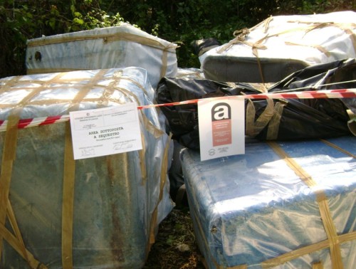 Il ritrovamento è stato fatto grazie ad un’azione congiunta tra i guardiaparco del distaccamento di Orvinio e i carabinieri di Licenza, due dei comuni del Parco Regionale. L’operazione di individuazione delle discariche è risultata molto complessa perché il materiale imballato, ed estremamente pericoloso, è stato abbandonato in 11 diversi siti lungo un tratto di 12 km, localizzati tra il km 24.400 e il km 36.200 della strada Licinese che collega i comuni di Licenza, Orvinio e Percile.