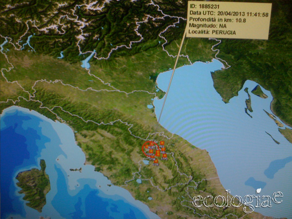 Mentre noi di Ecologiae ci trovavamo nella Sala Sismica dell’INGV, il 20 aprile 2013, è stata registrato la sequenza di scosse riconducibili all’evento sismico a Città di Castello, con scosse di magnitudo compresa tra 2.2 e 3.6.